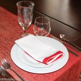 I am not one for ironing whole tablecloths! Since we were only having six at the table, I chose to use Pashmina Shawls/Scarfs. They make great table runners, are machine washable and require no ironing if taken right out of the dryer and hung on a hanger. These Pashminas are available at Tabletop Trends. Enjoy 20% off with Coupon Code OMG20.
