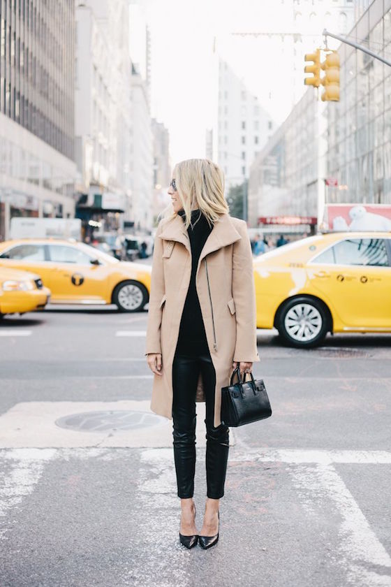 I love the color combination of camel and black. A camel coat or jacket is the perfect neutral to lighten up an all black outfit, which if you are like me, you own a lot of. A leopard clutch or purse or a fur scarf ties the two together perfectly.