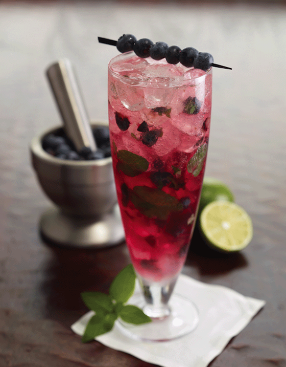 My cocktail of choice is wine.  I love Sauvignon Blanc in the Summer (especially Kim Crawford’s from New Zealand) and a variety of reds the rest of the year.  Since we were being adventuresome I decided to try something different and ended up with a Blueberry Mojito.