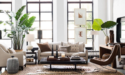 I love the neutral palette of this living room at William Sonoma Home. The greenery adds a wonderful pop of color and the windows let in so much natural light.