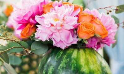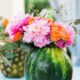 Instead of reaching for a glass vase, select fruit for vases for your summer party. These hollowed out fruits make adorable vases for summer centerpieces.
