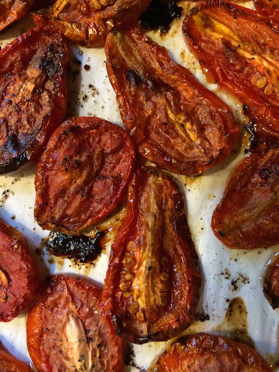 Roast for 2-3 hours, depending on the consistency you would like. I prefer the tomatoes to be a little charred and caramelized as shown below.