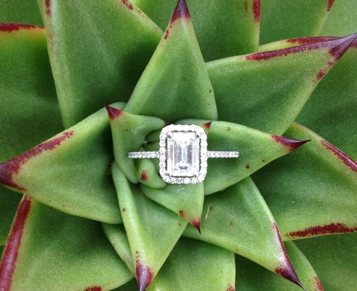 The current trend for engagement rings continues to forgo the single solitaire ring for halo style setting and smaller diamonds highlighting the main stone.