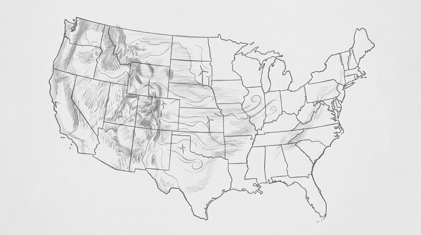 South Dakota takes the top spot. Its wide-open plains give wind very little to slow down, so air moves across the state like water through a funnel.